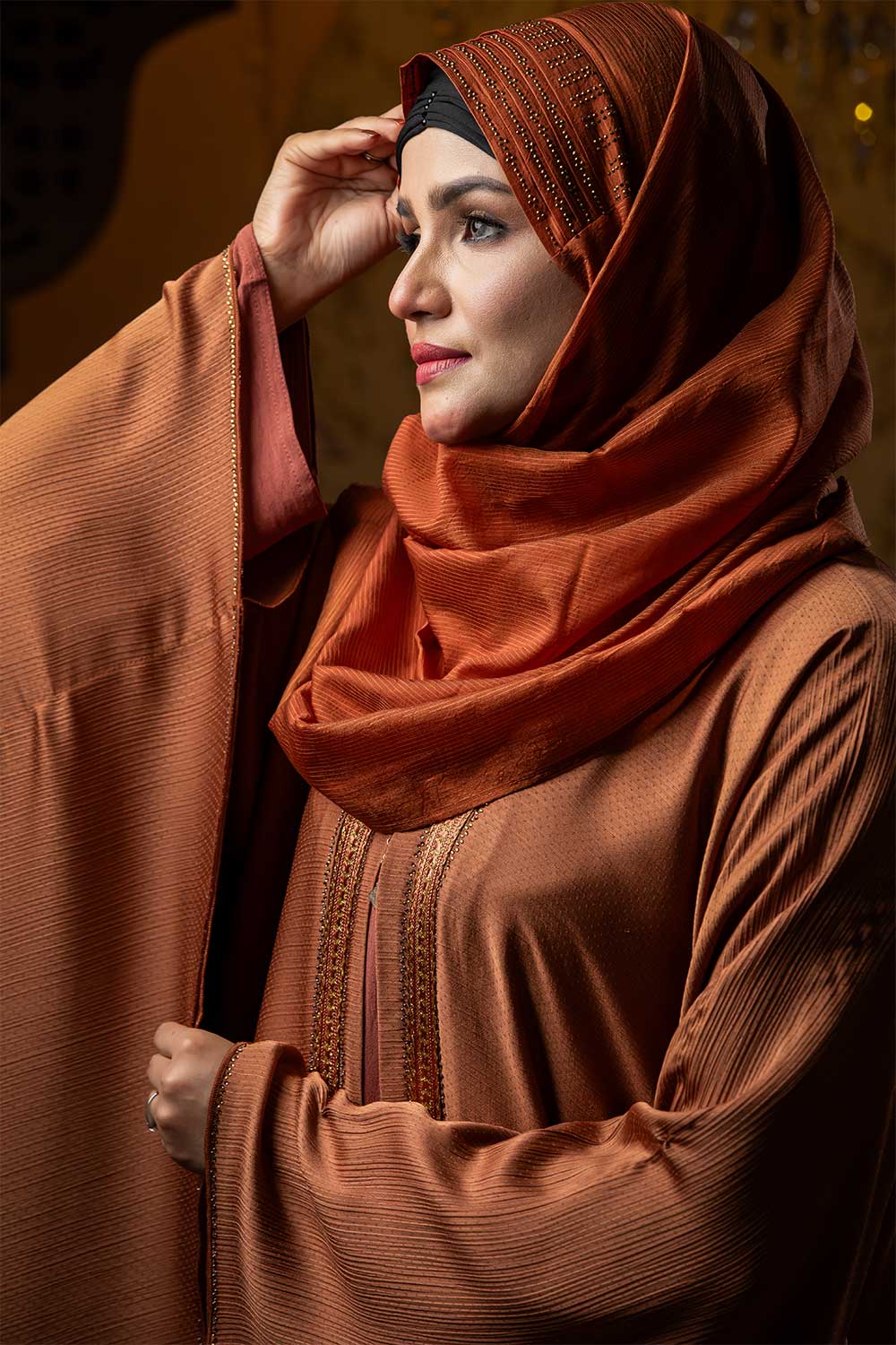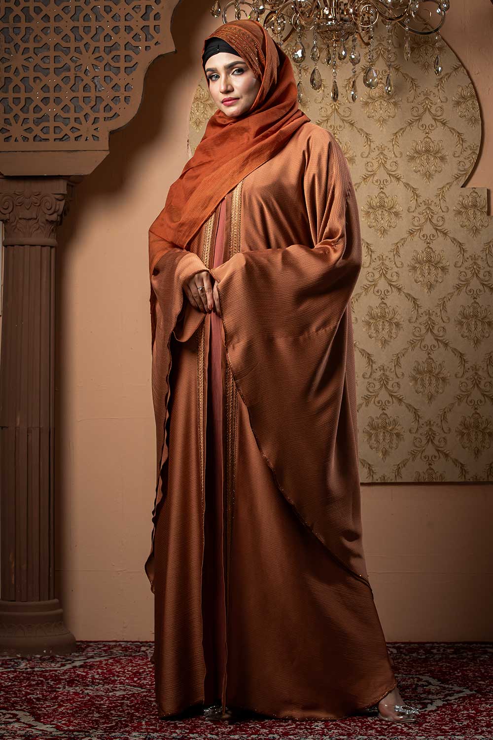 Be the first to review “Orange Color Abaya with Lace & Stone Work”